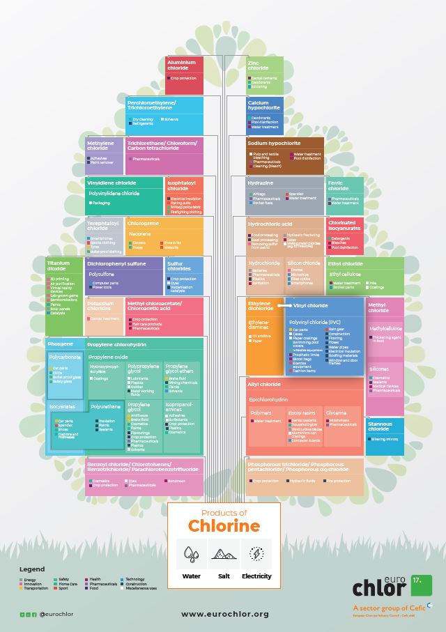 The Chlorine Tree - Dozens of useful products in which Chlorine chemistry plays a key role