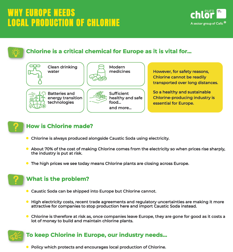 The Commission concludes: “Electricity price is a crucial driver for chlorine production costs, affecting the competitiveness of the industry”.